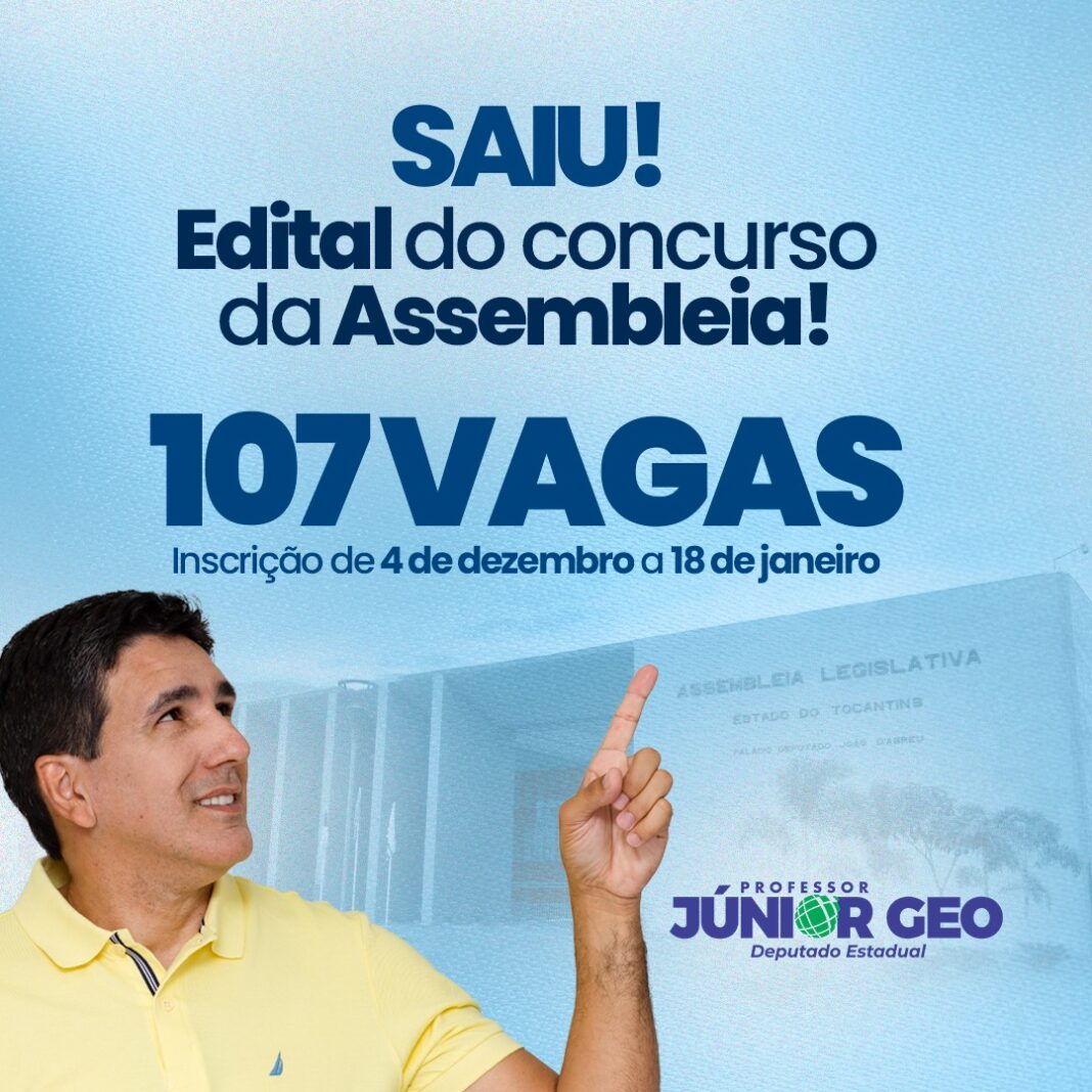 “Muitas pessoas estão na expectativa por este concurso e agora vai dar certo! Parabenizo o presidente da Casa pelo empenho e andamento do certame da Casa. Sempre cobrei e destaquei a importância deste concurso para a população e para a própria Assembleia, a necessidade de servidores concursados no serviço público é fundamental”, apontou Geo.