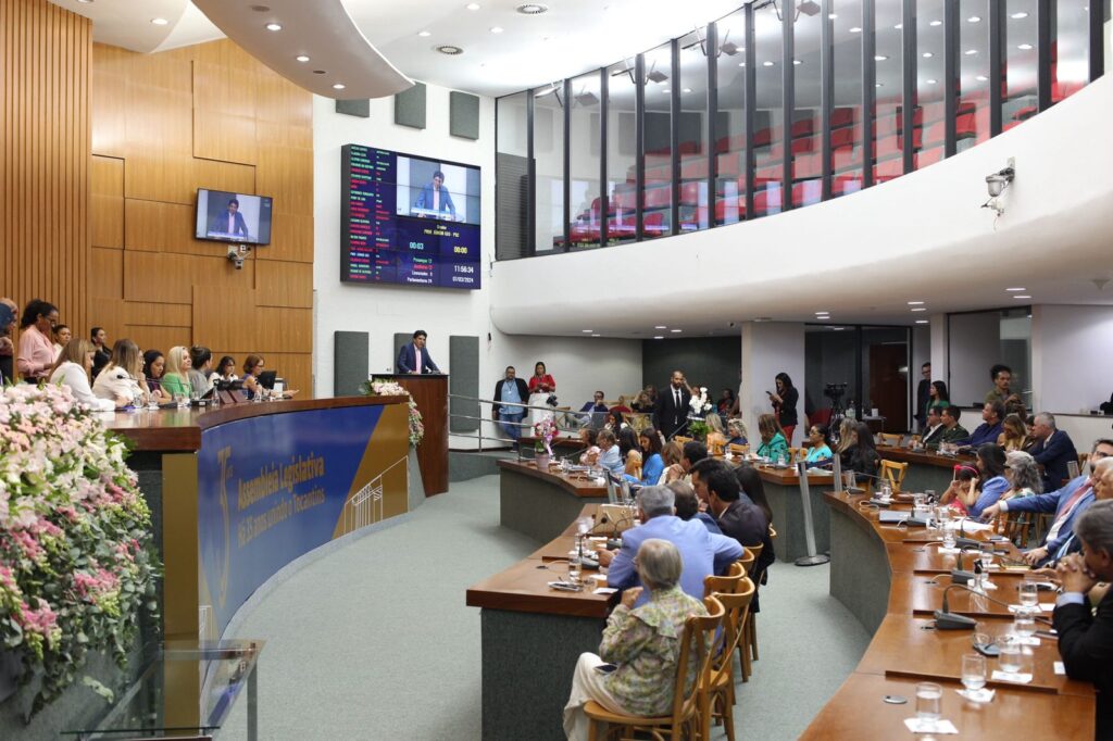 Na manhã desta quinta-feira, 7, durante sessão solene em homenagem ao Dia da Mulher, na Assembleia Legislativa do Estado do Tocantins (Aleto), o deputado estadual Professor Júnior Geo (Podemos) prestou uma significativa homenagem à prefeita de Palmas, Cinthia Ribeiro.